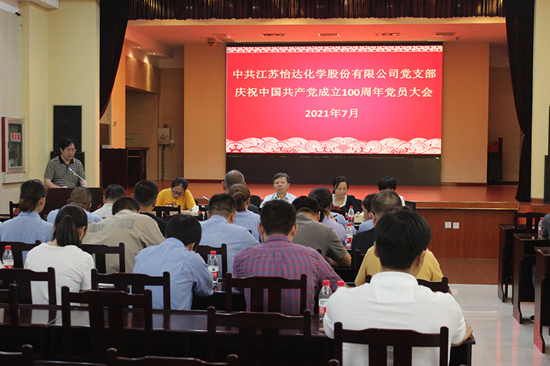 為熱烈慶祝中國共產(chǎn)黨成立100周年,江蘇怡達(dá)化學(xué)股份有限公司黨支部于2021年7月3日在公司職工之家組織召開了黨員大會,本次會議由公司黨支部委員蔡國慶同志主持,大會在莊嚴(yán)的國歌聲中開幕。