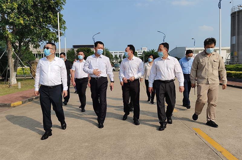 2022年4月14日,珠海市人大常委會主任潘江、秘書長陳家平、副秘書長李冬鵬、市財經(jīng)工委主任高松和市工業(yè)和信息化局有關(guān)領(lǐng)導(dǎo)、珠海市金灣區(qū)副區(qū)長黃能強(qiáng)、珠海市斗門區(qū)人大常委會黨組書記主任吳文萊、黨組成員副主任王進(jìn)、黨組成員辦公室主任李穎、金灣區(qū)科工信局主要負(fù)責(zé)同志等一行赴珠海怡達(dá)化學(xué)有限公司進(jìn)行生產(chǎn)經(jīng)營情況調(diào)研指導(dǎo)。