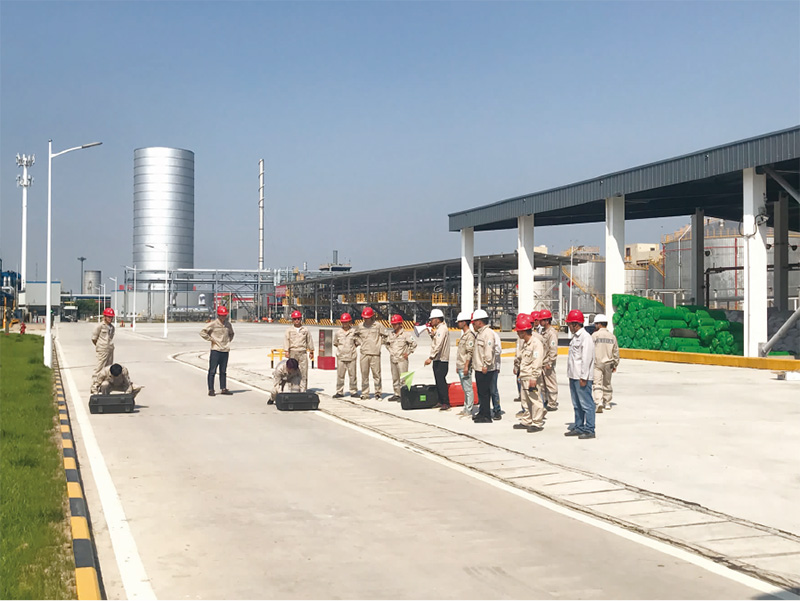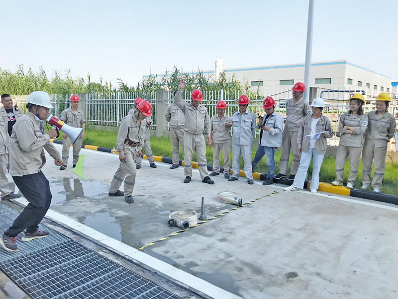 本次技能競賽分為個人佩戴空呼 50米跑、兩人兩 盤水帶連接、消防滅火器使用技能三個項目,參加本次技能比賽的共有 42名員工,根據(jù)最終比賽用時計算,雙氧水車間名列第一,儲運部和檢驗部分列第二、第三 名。
