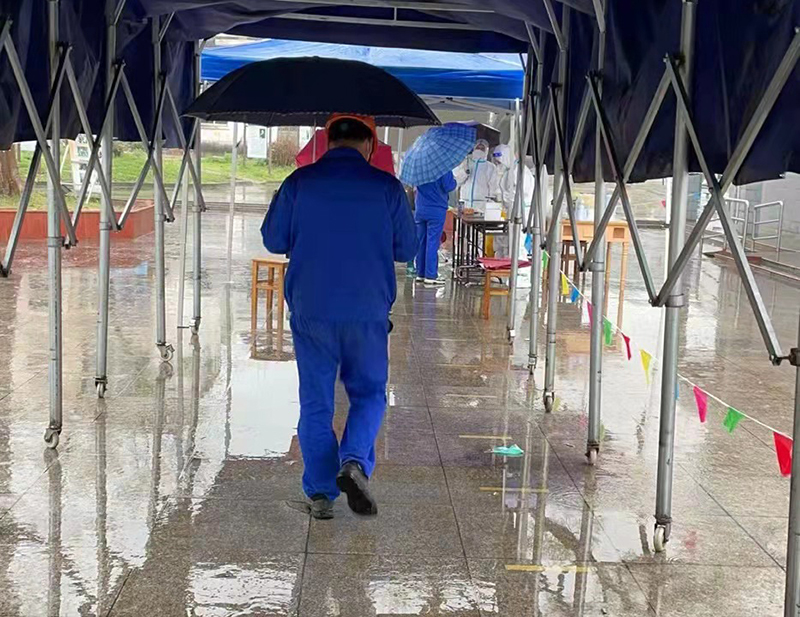 ▲ 公司員工排隊(duì)核酸采樣