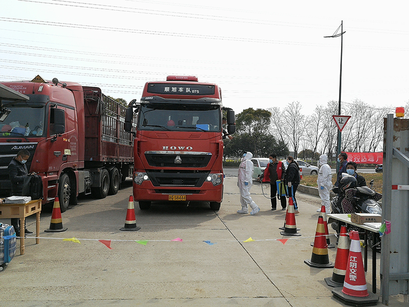 ▲ 物流車(chē)輛在管控卡口接受查驗(yàn)與消殺